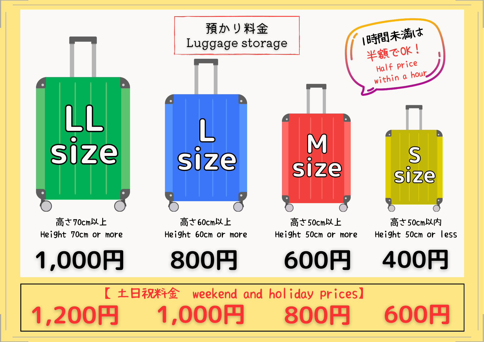 ※営業時間を超える預かりは、1日分ずつ超過料金をいただきます。