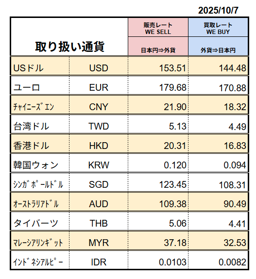 相場急変や情勢の変化により、レートが変更になる場合がございます。