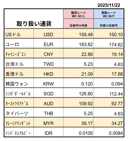 *Foreign currency to Japanese yen ⇒ Machine exchange *From yen to foreign currency ⇒ Person-to-person currency exchange in store